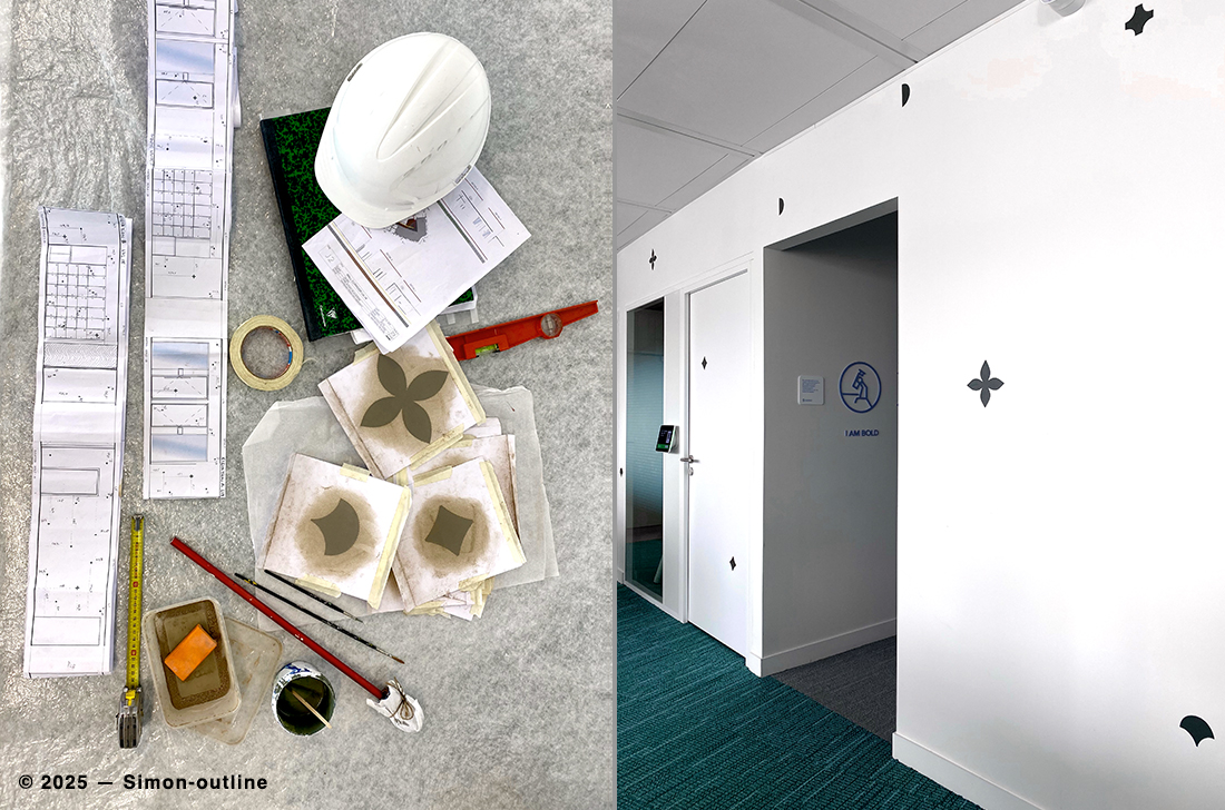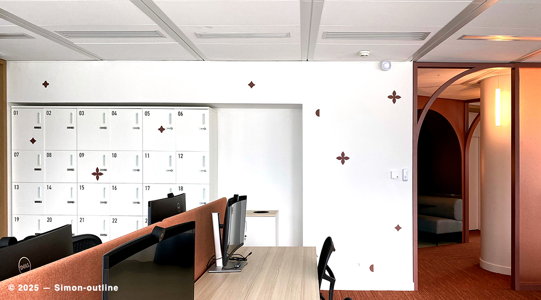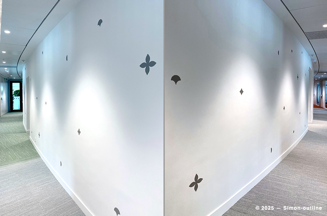 Signalétique et motifs peints sur les murs des bureaux à LA DEFENSE — PUTEAUX 92800