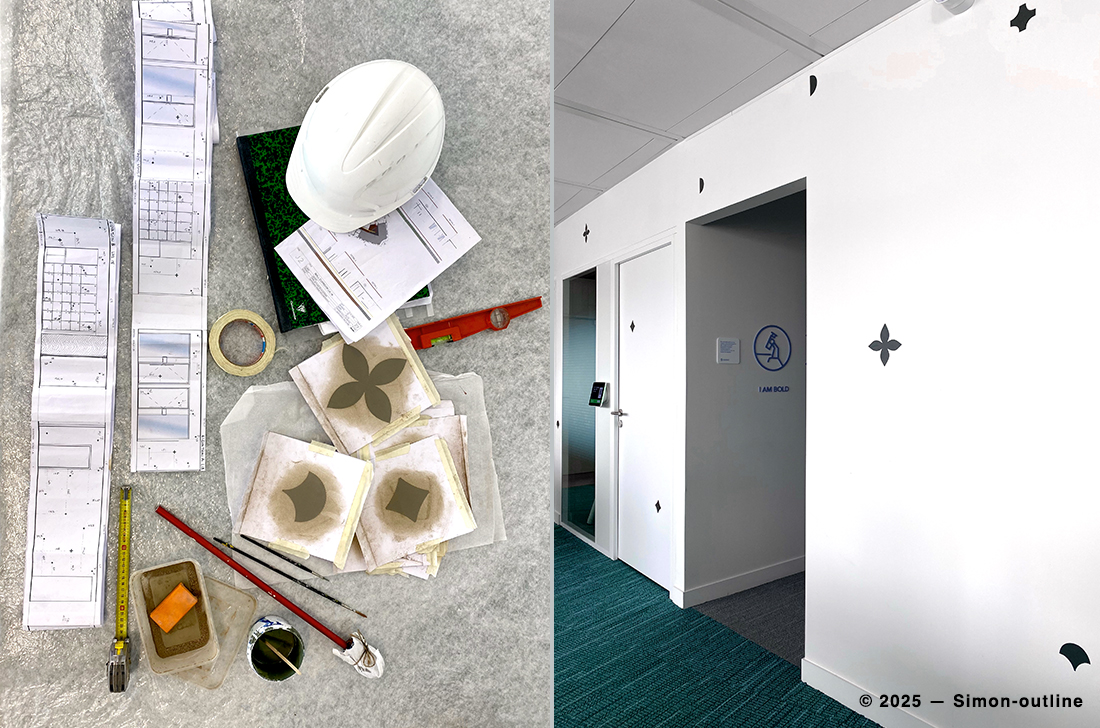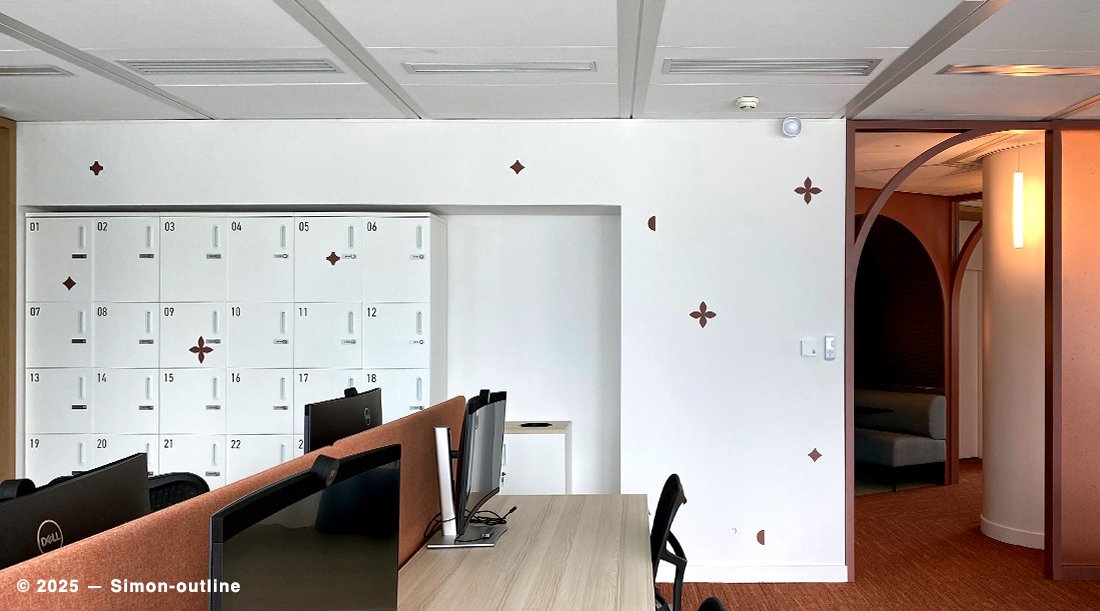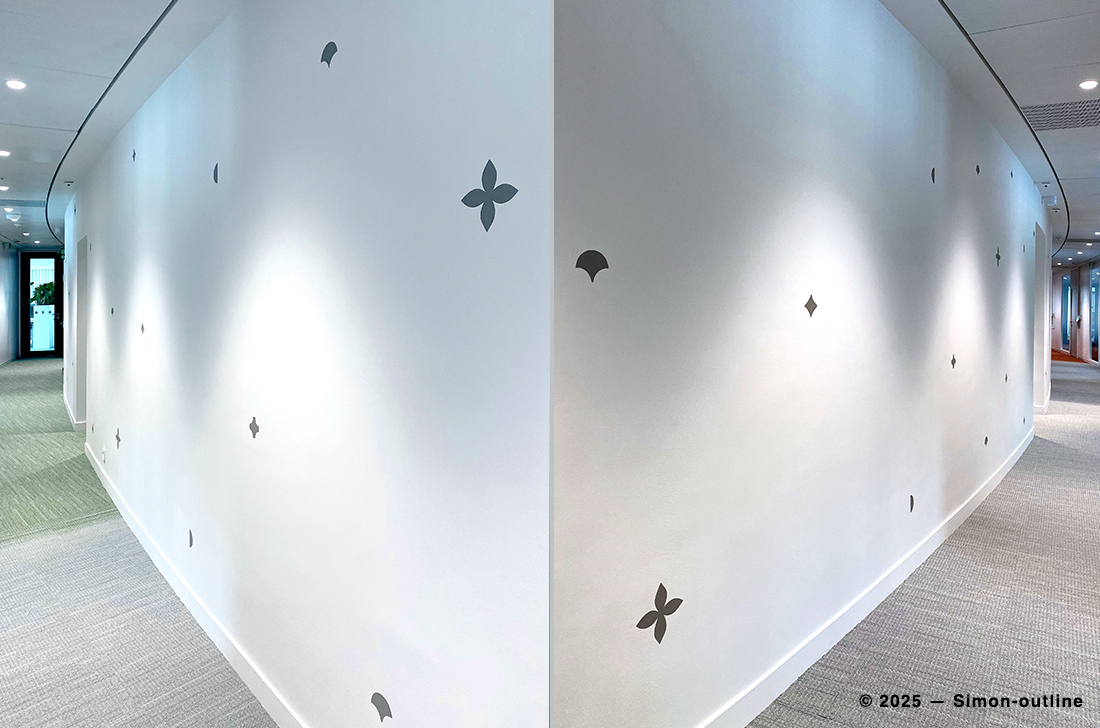 Signalétique et motifs peints sur les murs et le mobiliers des bureaux pour un Client Confidentiel — La Défense, PUTEAUX 92800