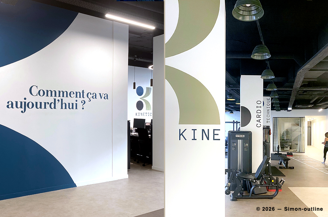 Scénographie & Signalétique peintes à la main dans le Cabinet de Kinésithérapie KINETIC — Rue Georges Picquart, PARIS 75017