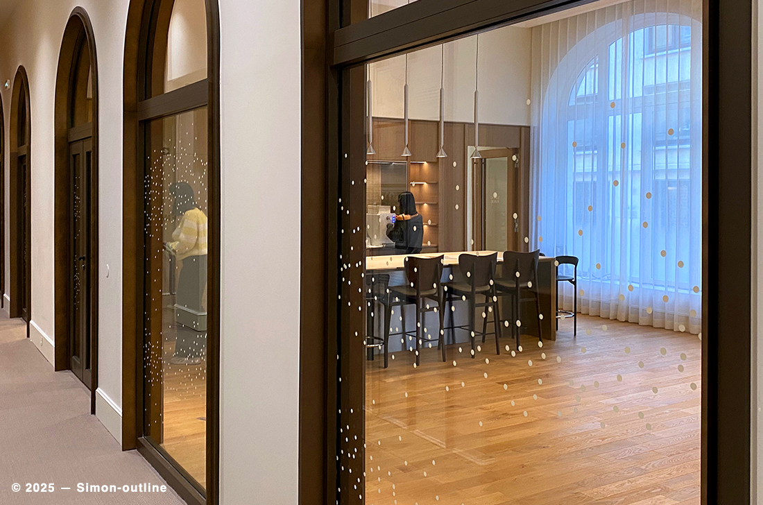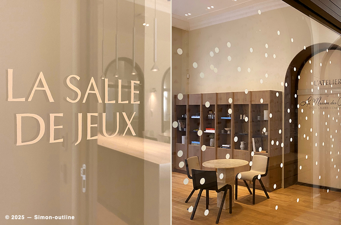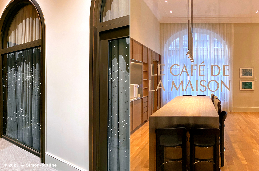 Signalétique peinte à la main, lettres et pattern sur vitres d'un Atelier de Parfums pour un CLIENT CONFIDENTIEL — PARIS 75002